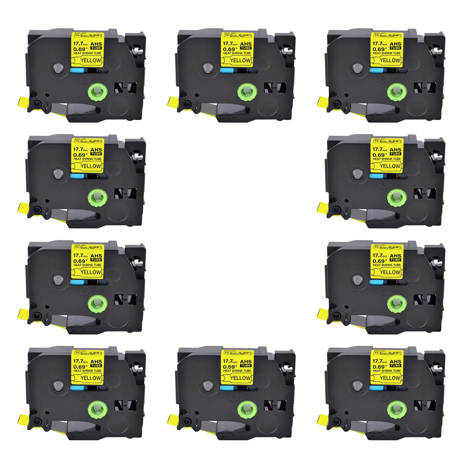 10PK Compatible with Brother P-Touch HSe-641 Heat Shrink Tube Replacement Black on Yellow 17.7 mm x 1.5 m Tape Cassette Label