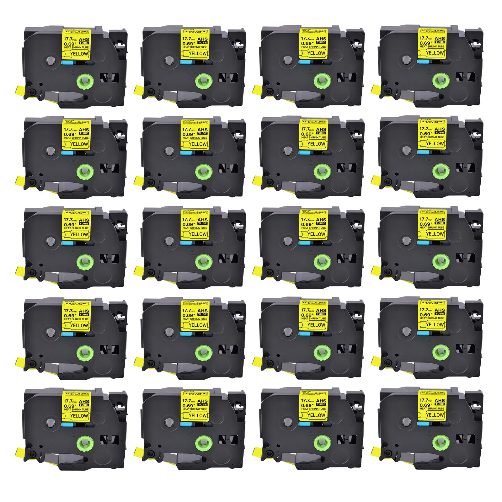 20PK Compatible with Brother P-Touch HSe-641 Heat Shrink Tube Replacement Black on Yellow 17.7 mm x 1.5 m Tape Cassette Label