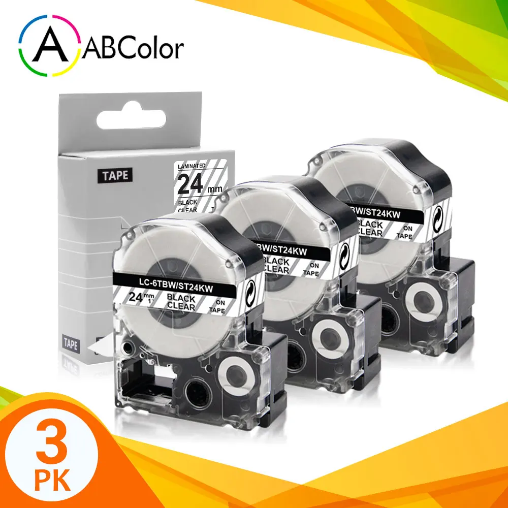 Compatible for Epson 24mm Tape ST24KW LC6TBN Label Maker Tape Black on Clear For Epson King Jim Printer LW-700 LW-900P LW-Z710