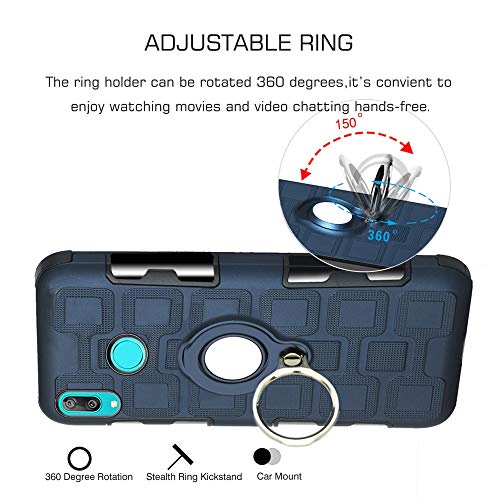 LFDZ Compatible Huawei Y7 2019 Custodia, Resistente TPU Case Design 360 Grado Rotazione Protective Custodia Cover per Huawei Y7 2019 / Y7 PRO 2019 / Y7 Prime 2019 (Not Fit Huawei Y7 2018),Deep Blue