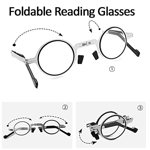 JUNZ Compatto Pieghevole Occhiali da Lettura per Donne/Uomini,Portatile Mini Blocco Luce Blu Occhiali di Computer Occhiali da Vista,Cornice Rotonda Rettangolare in Metallo,1.0-3.5