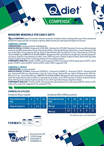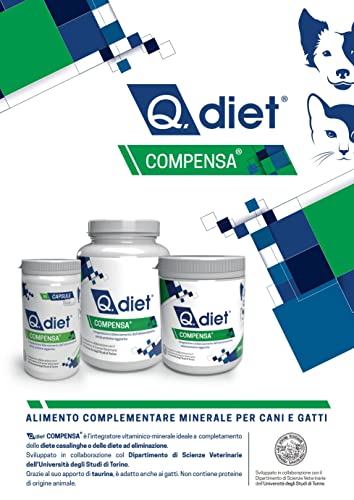 Q.Diet Compensa 120 Capsule Cane Gatto 96g Integratore Alimentare Ricco di Vitamine E Minerali Ideale A Completamento delle Diete Casalinghe. per Cani di Piccola Taglia Fino A 10 kg E Gatti