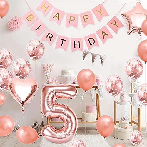 5 Anni Compleanno Bambina, Addobbi 5 Anni Compleanno Bambina, Palloncini 5 Anni Bambina, Decorazioni Compleanno Rosa Gold, Compleanno Banner