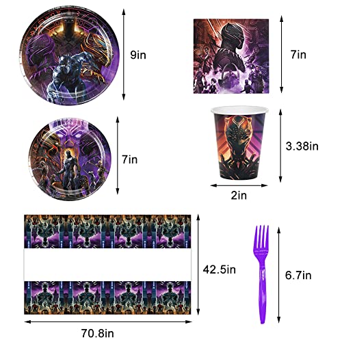 Compleanno Black Panther Stoviglie Set, Feste Decorazione Stoviglie per Feste Forniture per Tazze Banner Tovaglia Addobbi Tema Forniture for Feste per Compleanno 10 Ospiti