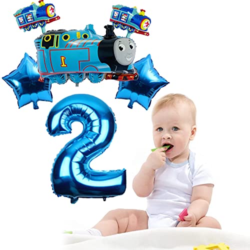 Compleanno, decorazione per bambini, treno, 2 anni, accessori per feste di compleanno, con numero 2, palloncini in pellicola di stagno, per bambini, treni, feste di compleanno