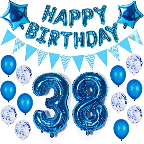 Perfetta 38° Decorazione per feste di compleanno: il set di palloncini è di colore blu. Bel set di decorazioni per 38° compleanno per una sorpresa perfetta. Idea regalo speciale per uomini e donne