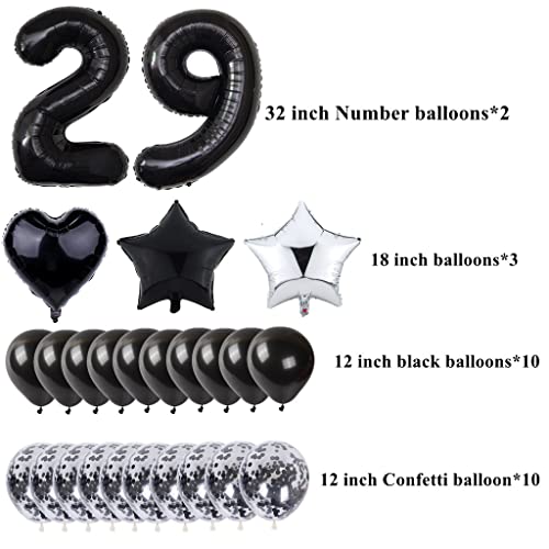 29 compleanno Decorazione nera: contenere palloncini Ballioni da 32 pollici digitali "29" + ghirlanda di buon compleanno + 10 palloncini in lattice + 10 palloncini di coriandoli + 1 palloncini di herz foilen (18 pollici) + palloncini a 2 stelle (18 pollici) + Hangeddeko (pacchetto da 6 pacchetti ) + Legamenti dei palloncini