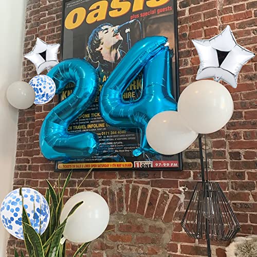 60° compleanno decorazione blu: include palloncini con numero "60", 6 palloncini in pellicola con numero "60", 6 palloncini in lattice blu scuro, 6 palloncini bianchi in lattice, 6 palloncini con coriandoli, 2 palloncini a forma di stella da 18", 2 palloncini a forma di stella da 18", 1 decorazione per torta Happy 60th Birthday, 5 decorazioni per torte a forma di cuore, 5 decorazioni per torte a forma di stella. Decorazione, 2x Nastri per palloncini.
