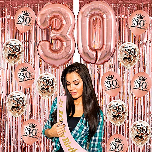 30 Anni Compleanno Decorazioni donna - (76packs) rose gold banner, bandierine, ghirlande, palloncini, tende, cupcake, piatti, accessori foto...