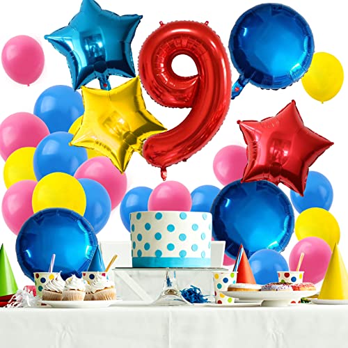 36 Pcs Compleanno Decorazioni, Compleanno Kit, Compleanno Palloncini, Palloncini Alluminio, Ragazzo Ragazza 9 Anni Decorazioni Compleanni