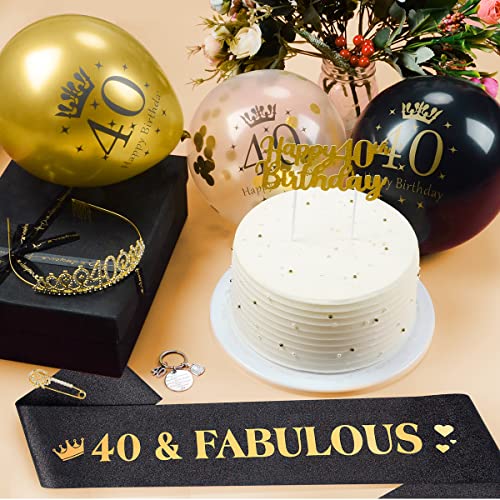 40 Anni Compleanno Donna,Palloncini 40 Anni Corona Compleanno Diadema e Fusciacca,Oro Nero Rosa Strass Corona Luccichio Fusciacca Palloncini Cake Topper per Decorazioni 40 anni Compleanno Regali
