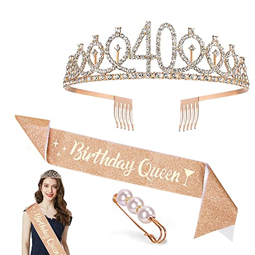 40 Compleanno Fascia, Compleanno Corona, Compleanno Crown, Strass Corona Diadema con Satin Sash per Bambini Decorazione Regalo e Accessori per Feste da Donna (d'oro)