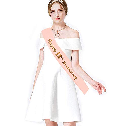 Buon 18 Anni Compleanno Fascia 2 Pcs Oro Rosa Ragazze 18anni di Compleanno Fasce Fascia Birthday Satin Sash 18 ° Compleanno Fascia 18th Birthday Fusciacca per 18 Anni Compleanno Decorazioni Regalo