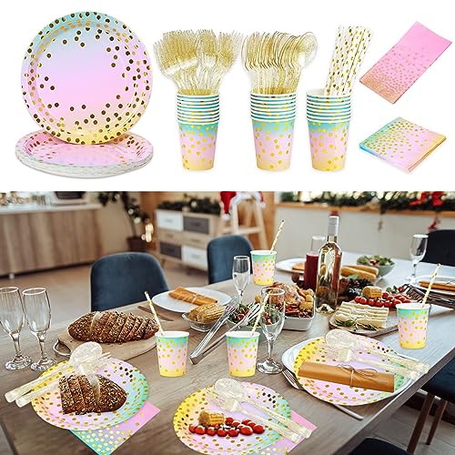 AGGIUNGI ATMOSFERA DI FESTA: Design a pois in lamina d'oro, che aggiunge un'atmosfera elegante e moderna, rosa con un senso di giocosità e vivacità, che migliorerà l'atmosfera della tua festa.
