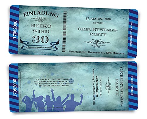 Compleanno Inviti compleanno biglietti d' invito "STRIPES - Blu - Ticket eintritt Slot con strappo di coupon 10 unit� per confezione
