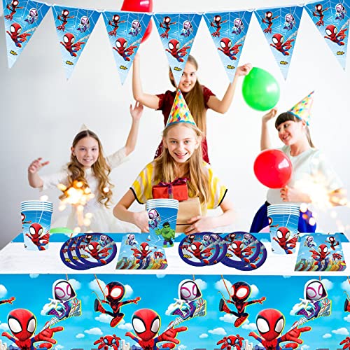 Kit Compleanno Spidey and His Amazing Friends per 10 Persone,Wopin- 42 Pezzi Stoviglie per Feste di Compleanno Include Tovaglia, Bandierine, Tovaglioli, Piatti e Bicchieri per Feste di Compleanno