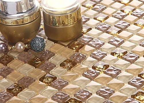 Complement 10 cm x 10 cm, motivo a mosaico oro, marrone e beige, in vetro, motivo CM0004