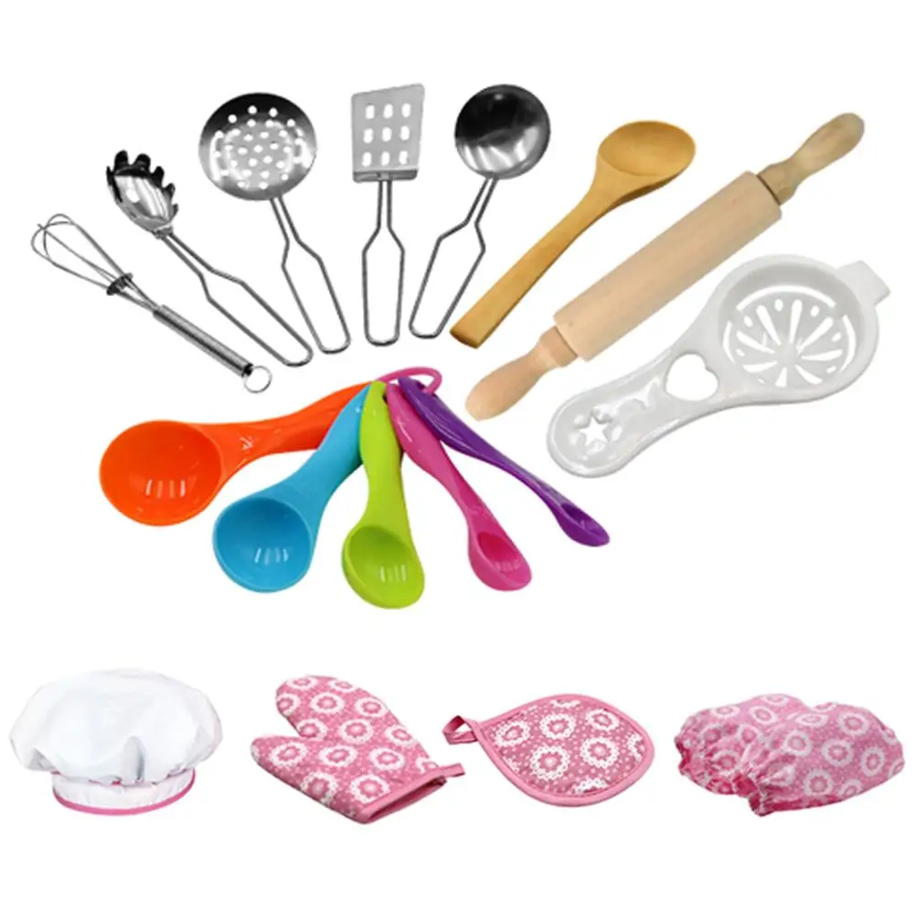 Complete Kids Cooking Baking Toy Set Role Play Kitchen Utensils Baking Tools Cake Apron