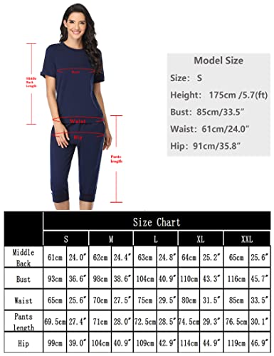 NB Completi Sportivi Donna 2 Pezzi Tuta da Ginnastica Cotone T-Shirt Manica Corta e Pantaloni 3/4 Estate Casual per Jogging Training Fitness Yoga Pigiama Nero XL