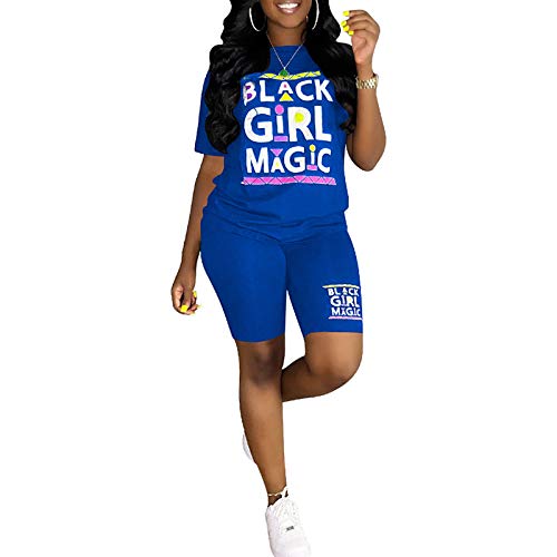N /C Completi Sportivi da Donna in 2 Pezzi Magliette Casual a Maniche Corte con Lettere Pantaloncini Aderenti Set Pagliaccetti della Tuta (Blue, S)