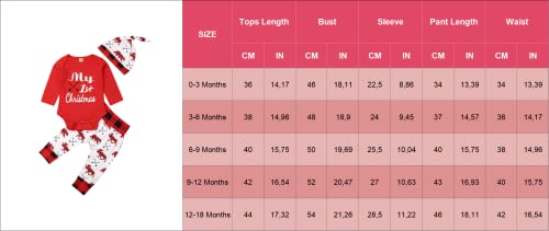 Completini di Natale per Neonato 3 Pezzi Completo Natalizio per Bambini 0-18 Mesi Pagliaccetto a Maniche Lunghe con Lettere Il Mio Primo Natale + Pantaloni Lunghi + Cappello (Rosso, 3-6 Mesi)