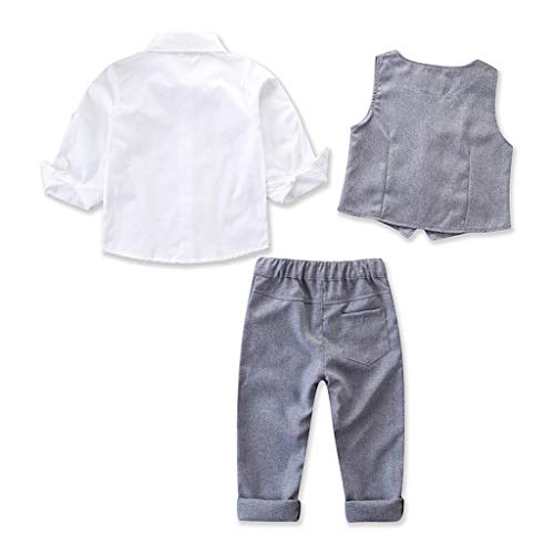 4pcs Completini Neonato Manica Lunga Bowtie Camicia Gilet Cime + Striscia Pantaloni Bambino Gentiluomo Vestiti (Grigio, 3-4 Anni)