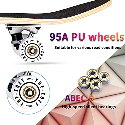 【Skateboard in acero】 9 strati di alta qualità in acero canadese, 31, x 8 in (circa 80 x 20,0 cm), robusto e durevole, può resistere a piloti fino a 200lb (circa 99,8 kg).