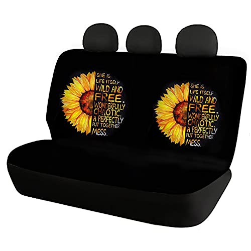 HUGS IDEA - Set completo di coprisedili per auto, antiscivolo, motivo girasole alla moda, con lettera universale, per anteriore e posteriore, confortevole cuscino in tessuto traspirante, colore: nero