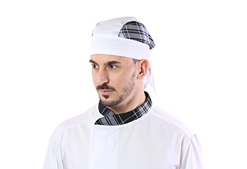 Completo Cuoco Bianco - Scozzese - Divisa Chef Uomo - 4 PZ - Giacca, Pantalone, Davantino, e Bandana - per Cucina e Ristorante (XXXXL)