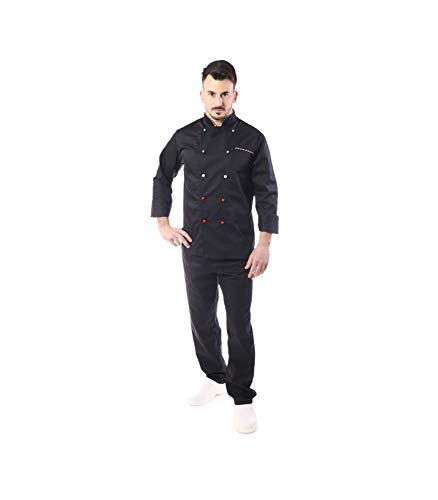 Completo Cuoco - Nero Italia - Divisa Chef - 100% Cotone - per Uomo - 4 PZ - Giacca Pantalone Davantino Bandana - Ricamo Gratuito - per Cucina e Ristorante Made in Italy (XXL)
