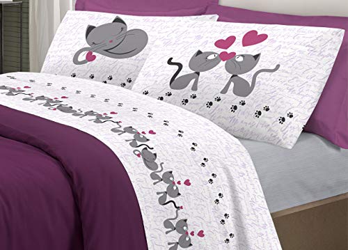 Set Completo Lenzuola in 100% Cotone Linea Pensieri Delicati Dis. Gattini Rosa Matrimoniale Rosa