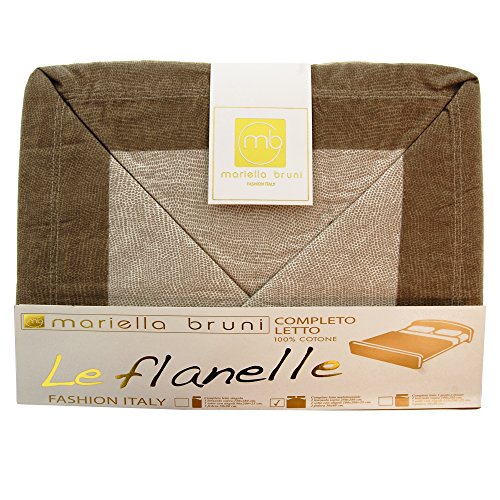Completo Lenzuola in Flanella 100% Cotone 2 Piazze Letto Matrimoniale Beige Tortora (Beige)