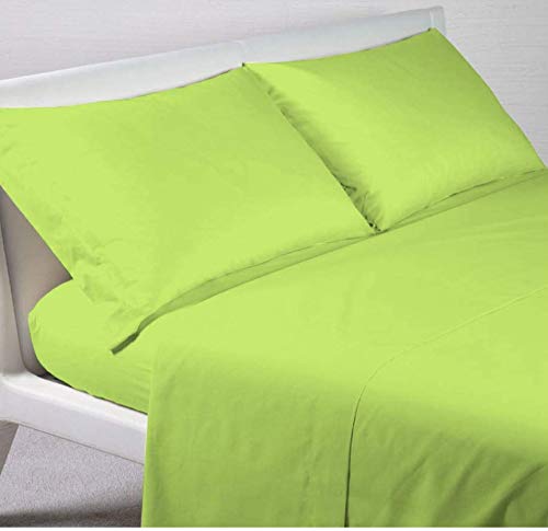 Completo Lenzuola Letto Matrimoniale Singolo Una Piazza e Mezza 100% Cotone TUTTI I COLORI (Una Piazza e Mezza 185x290, Verde Mela)