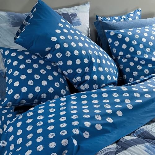 Completo lenzuola matrimoniale Caleffi in puro cotone Bolle blu