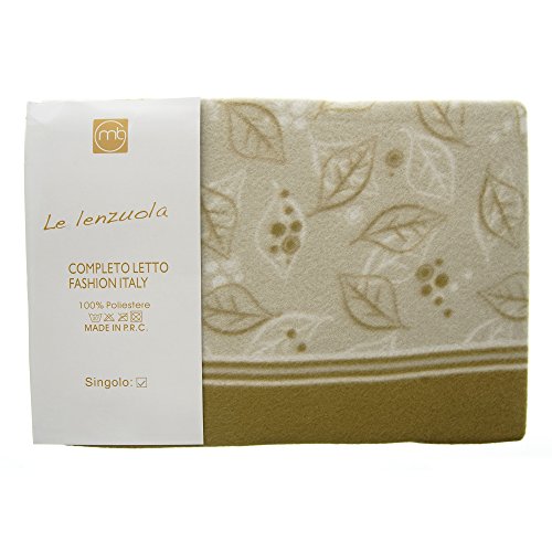 Completo Lenzuola in Pile Morbido e Caldo Plaid 1 Piazza Letto Singolo Varie Fantasie (Foglie Beige)