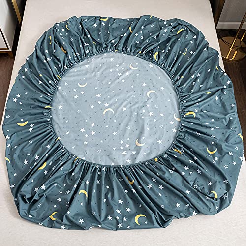 Completo Lenzuolo Letto Una Piazza e Mezza Stella e Luna 4 Pezzi, Lenzuola Sotto Angoli Elasticizzati 135x190x35 cm, con Lenzuola e 2 Federe, Morbido Fino a 35 cm di Profondità, Turchese