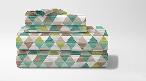 Completo Letto in Cotone Di Flanella Calda e Morbida Anti Pilling - Set Lenzuola Flanellato 3 Misure parure con Federe - Singolo - Riga Rosa (Piazza e mezza, Triangoli Verdi)