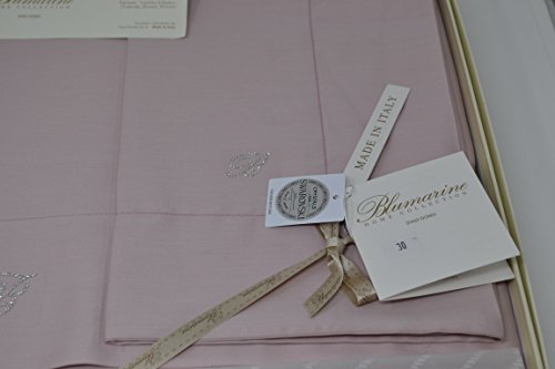 Completo Lenzuola matrimoniali Blumarine, Articolo Lory in raso di puro cotone con logo Blumarine in cristalli Swarovski.