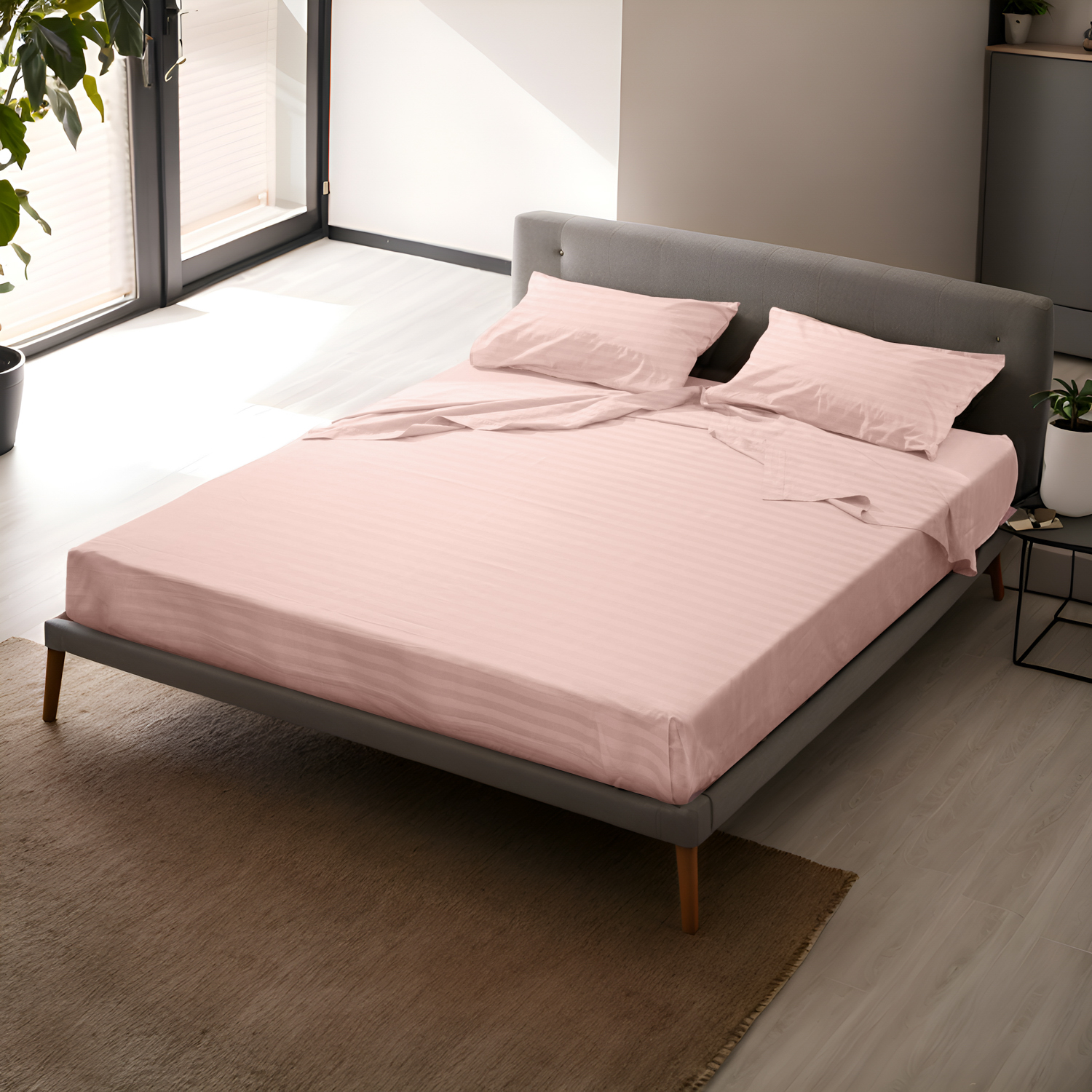 Completo letto matrimoniale righe rosa cipria in;