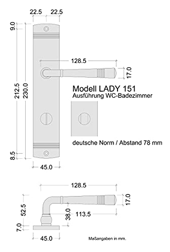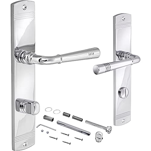 Completo Maniglie Porta per Camera Maniglia Porta Ottone Anticato Lucidato su Piastra Lunga | BB - Buntbart | Maniglia Porta Cromato Lucido Brillante | Modello Lady 151|Baubeschläge di Juva