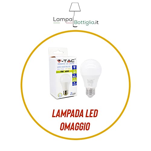 Portalampada E27 per Bottiglia - Lampada Led inclusa! Alta Qualità 100 % Made in Italy