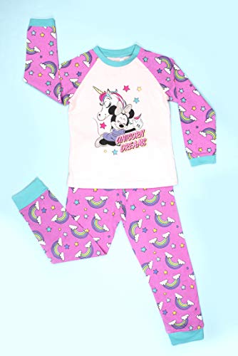 DISNEY DESIGN & ALTA QUALITÀ AL TATTO: Questi pigiami per ragazze sono la soluzione perfetta per la vostra piccola fan Disney. La maglia presenta la tua Minnie preferita che abbraccia il suo amico unicorno. Con maniche rosa intenso, con arcobaleni e stelle, il top ben adattabile non è solo comodo ma anche colorato e vivace. Il pantalone continua il design dell'unicorno rosa e sono risvoltati nella parte inferiore per un maggiore comfort.