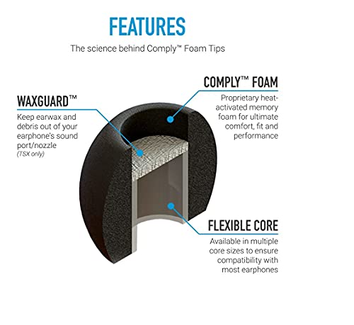 Comply Tsx-500 Comfort Plus 3 Coppie di Cuscinetti per Auricolari - Taglia Piccola (S) - Nero
