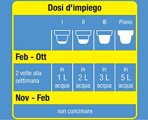 Facile da usare grazie al tappo dosatore graduato: consultare l'etichetta per scoprire il dosaggio adatto alla vostra pianta