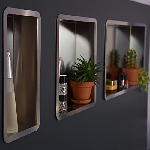 COMPONENDO Mensola Bagno | Mensola Doccia a Muro a Incasso, 15x30, Acciaio Inox, nicchia Doccia, Made in Italy (STARI)