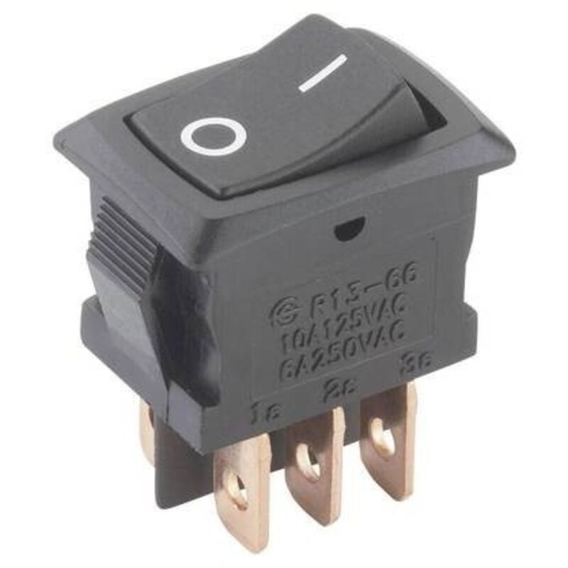 Dettagli tecnici Collegamento (Componenti) Faston 4,8 mm Colore alloggiamento/pulsante Nero Contenuto 1 pz. Corrente di commut. max. 6 A Funzioni (pulsante/interruttore) Permanente Materiale Poliammide Resistenza di contatto 50 mΩ Resistenza isolamento 100 MΩ/500 V/DC Serigrafia 0/I Tensione di commutazione 250 V/AC Tipo prodotto Interruttore a bilanciere Ritaglio piastra frontale opzionale (per spessore piastra frontale): 19,4 x 13,0 mm (1,25 - 2 mm) o 19,8 x 13,3 mm (2 - 3 mm) Interruttore a bilanciere 250 V/CA 6 A Interruttore a bilico per montaggio snap-in. Incluso nella consegna null Requisiti di sistema null Note Nella descrizione della posizione di commutazione i valori tra parentesi stanno a significare che si tratta di una funzione a posizione momentanea. Illustration similar.