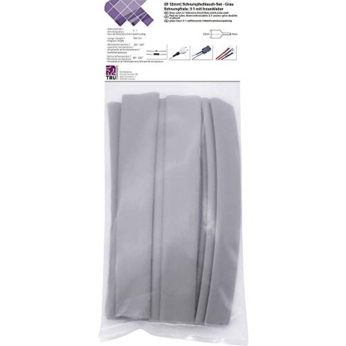 TRU COMPONENTS T1902CA040 Assortimento di guaine termoretraibili Grigio 12 mm Rapporto di restringimento:3:1 15 pz.