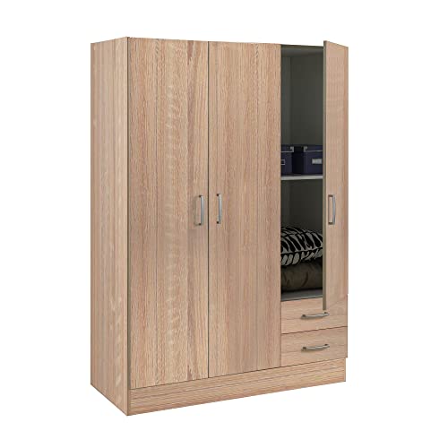 COMPOSAD | Armadio della Linea FACILE con 3 Ante e 2 Cassetti, Camera da Letto, Armadio con Ante, Dimensioni (LxAxP) 119,30x184,40x46,30 cm, Colore Rovere Sonoma, Made in Italy