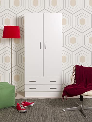 COMPOSAD | Armadio della Linea FACILE con 2 Ante e 2 Cassetti, Armadio con Ante, Camera da Letto, Dimensioni (LxAxP) 81,90x184,40x46,30 cm, Colore Bianco, Made in Italy