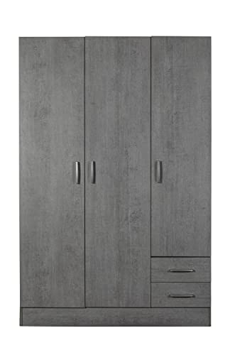Composad | Armadio della Linea FACILE con 3 Ante e 2 Cassetti, Camera da Letto, Armadio con Ante, (LxAxP) 119,30x184,40x46,30 cm, Colore Grigio Cemento, Made in Italy